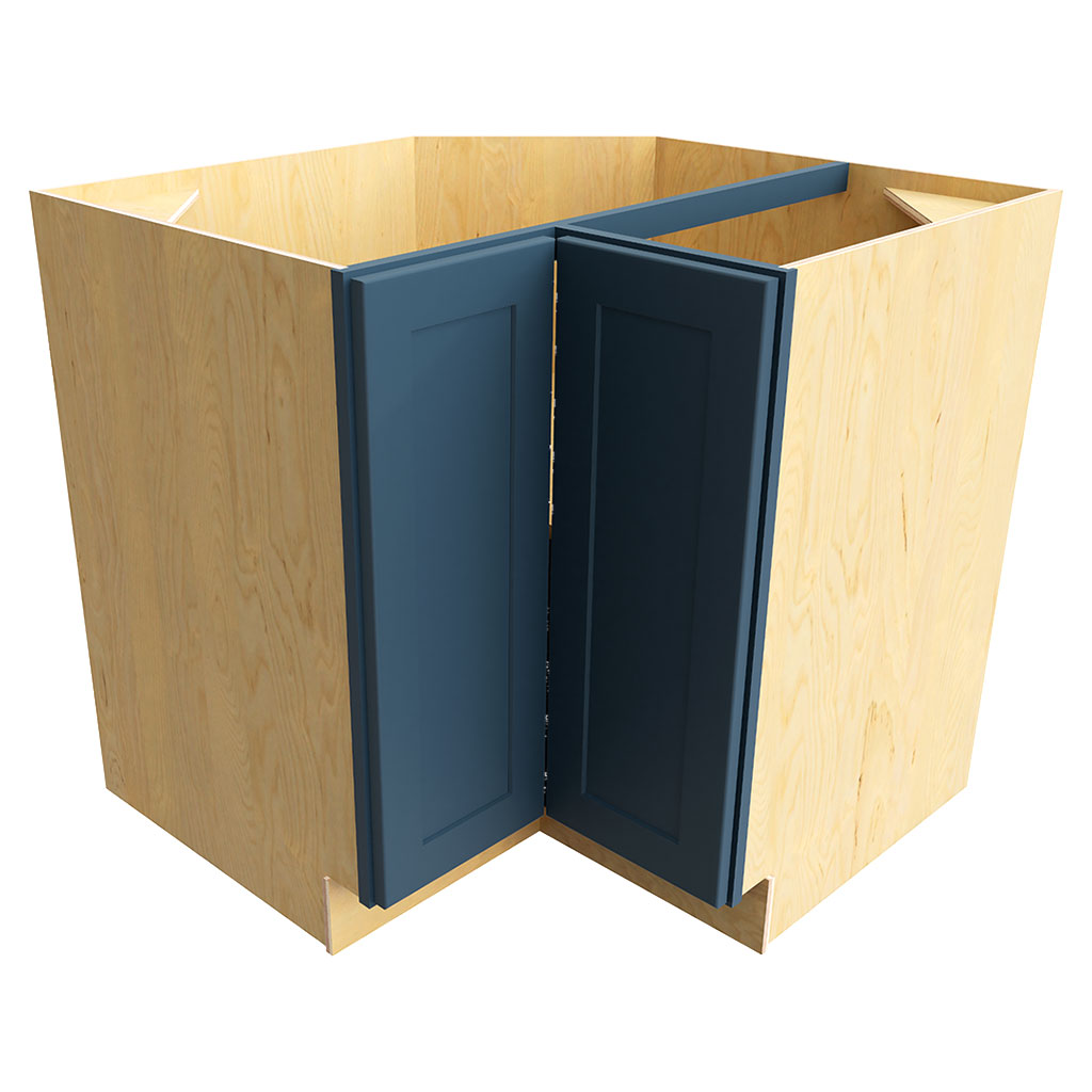 Introducing the ERB36 Easy Reach Corner Base cabinet, measuring 36"W x 34-1/2"H x 36"D. This description highlights its features: color in indigo, depth of 36 inches, height of 34-1/2 inches, style in galaxy, and width of 36 inches. Perfect for optimizing storage space in any corner of your home.