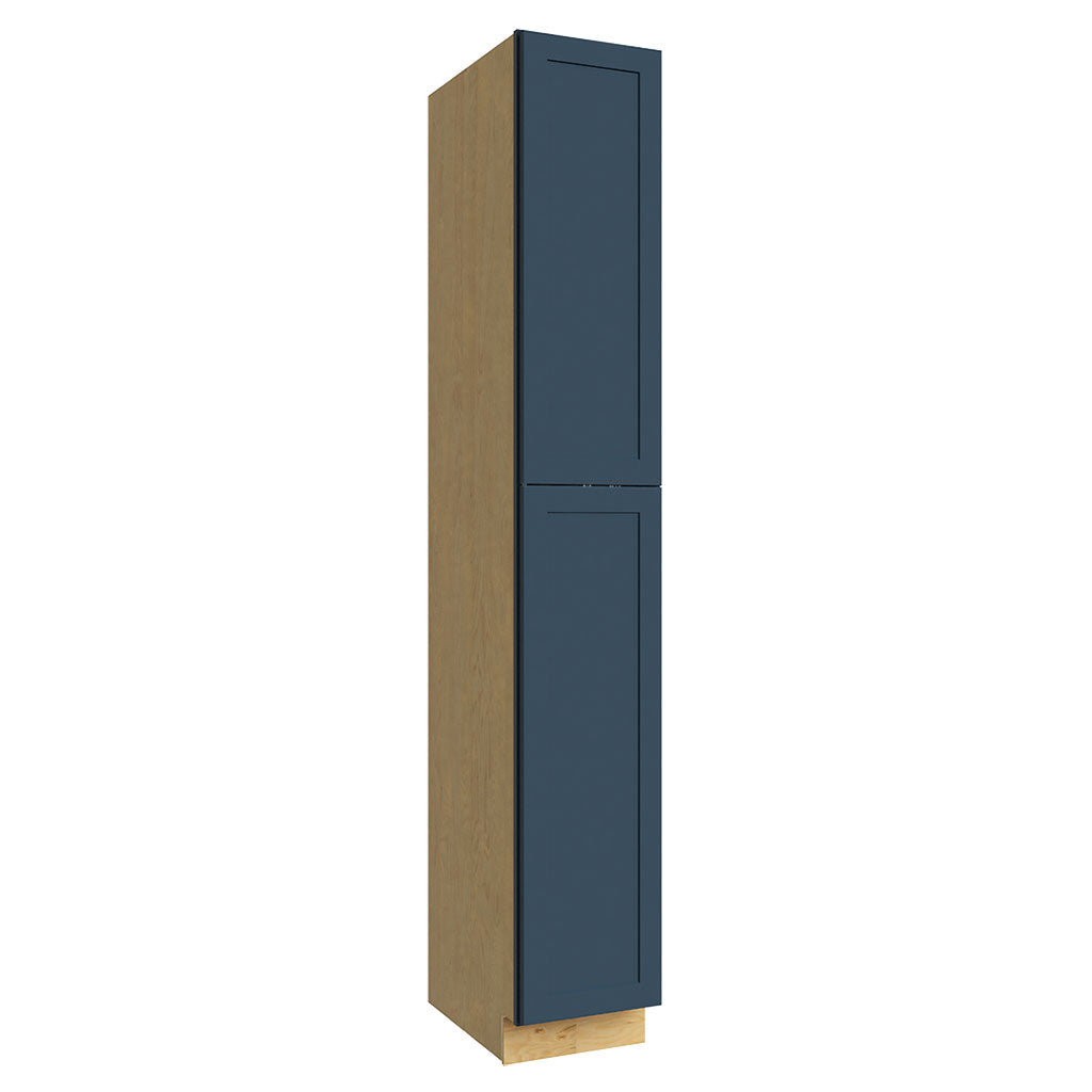 Introducing the TP152496 Tall Pantry Cabinet in Indigo color. With dimensions of 15"W x 96"H x 24"D, this stylish Galaxy-style pantry offers ample storage space. Perfect for organizing your kitchen essentials, it is designed to fit seamlessly into any modern home.