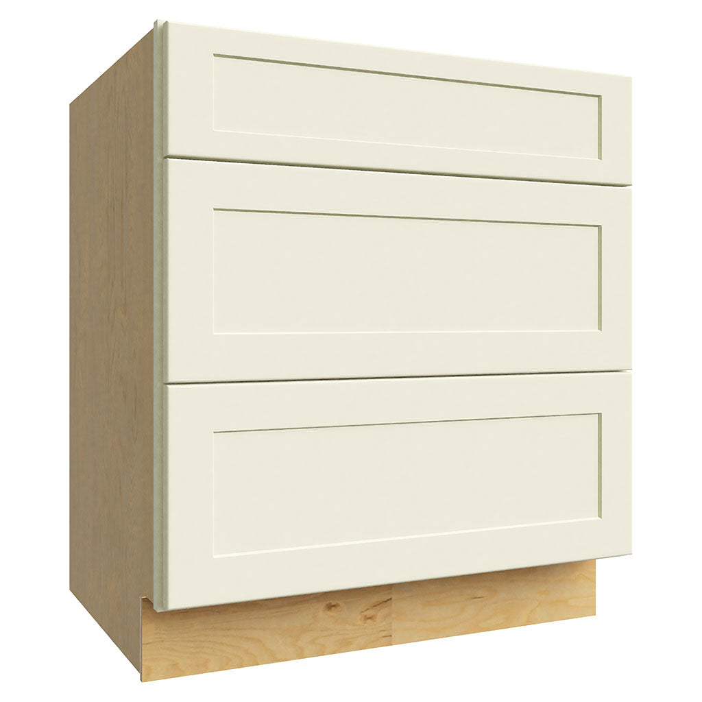 The DB30 (3 Drawer Base) is a 30 inch wide, 34-1/2 inch high, and 24 inch deep base cabinet in a stylish linen color. It features three drawers for convenient storage and organization. The Galaxy style adds a modern touch to any space.
