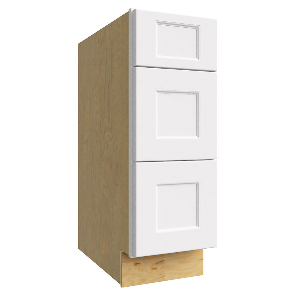 The DB12 (3 Drawer Base) is a 12 inch wide, 34-1/2 inch high, and 24 inch deep base cabinet in the color Frost. It features a Nexus style and is perfect for organizing and storing items.