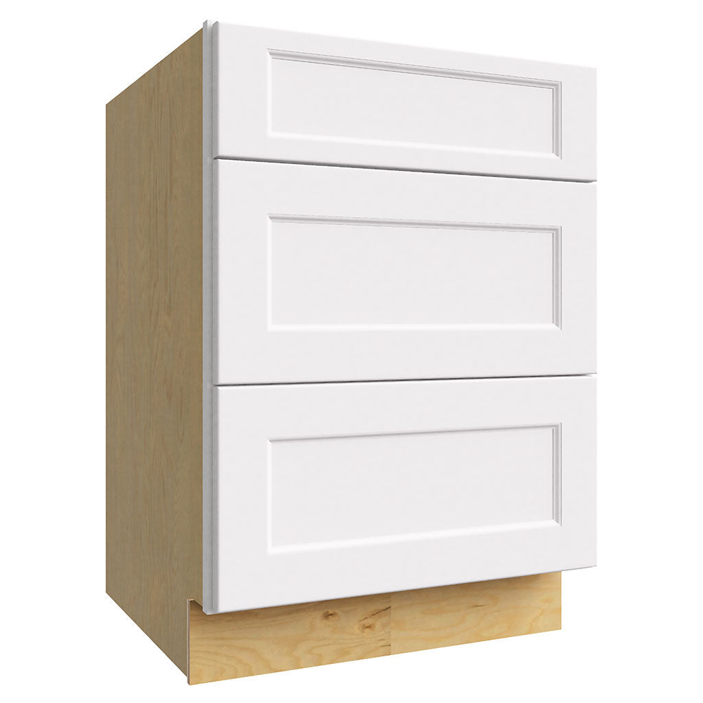 The DB24 (3 Drawer Base) is a 24 inch wide, 34-1/2 inch high, and 24 inch deep base cabinet. It comes in a stylish frost color and features a Nexus design. Perfect for organizing and storing items, this cabinet is a great addition to any space.