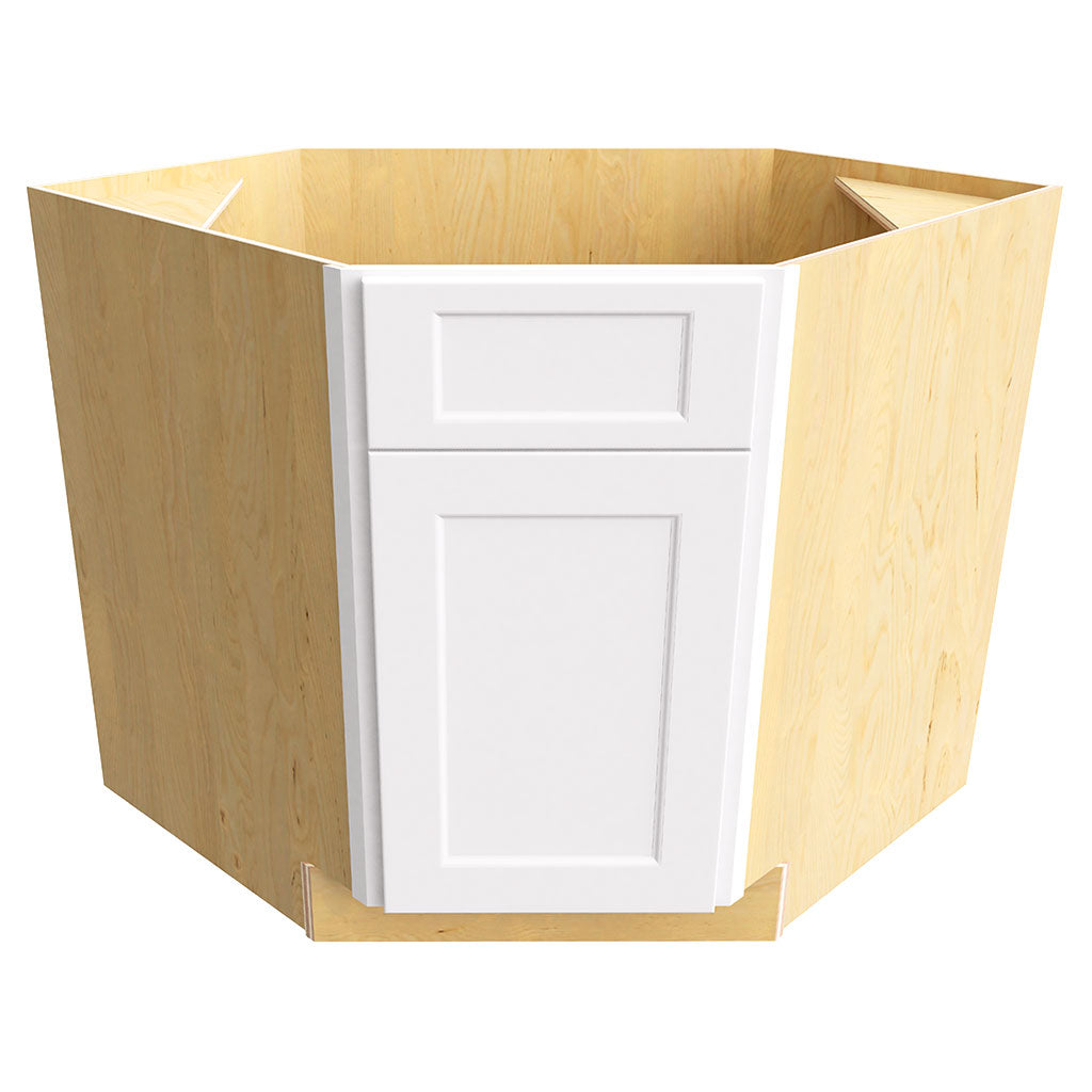 The DSB36 (DIAGONAL SINK BASE) is a 36 inch wide, 34-1/2 inch high, and 36 inch deep base cabinet. It comes in the color Frost and features the Nexus style. Perfect for any kitchen, this cabinet is both functional and stylish.