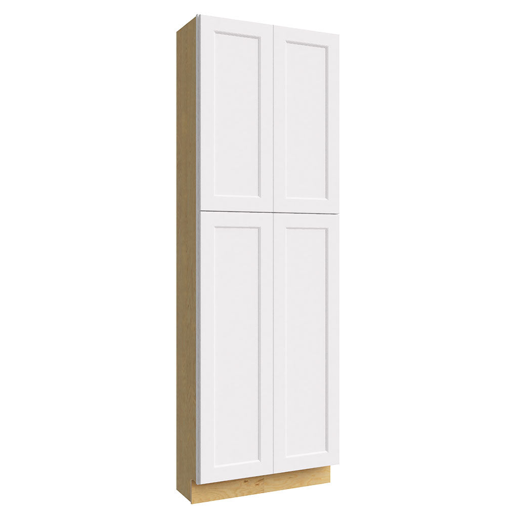 Introducing the TP301290 Tall Pantry Cabinet in Frost color. With dimensions of 30"W x 90"H x 12"D, this Nexus style pantry is perfect for organizing your kitchen essentials. Its 12-inch depth provides ample storage space, while the 90-inch height maximizes vertical storage. Upgrade your kitchen with this stylish and functional pantry cabinet.