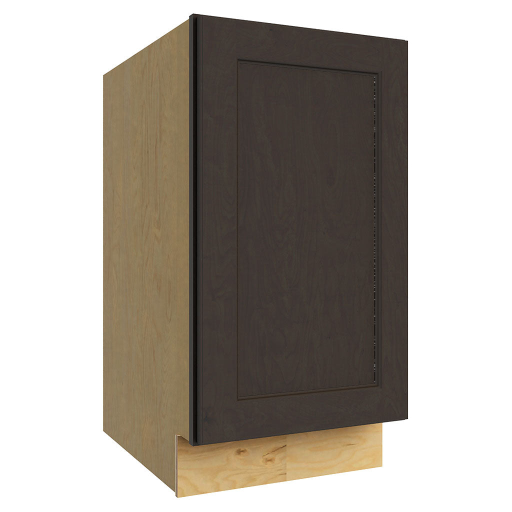 The B18FD is a full-height base cabinet measuring 18"W x 34-1/2"H x 24"D. It comes in the stylish color KONA and features a Fusion style. With a depth of 24 inches and a width of 18 inches, this cabinet is perfect for any kitchen or bathroom.
