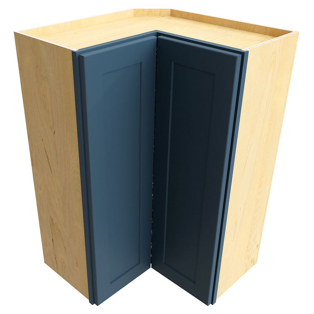 Introducing the WPC2436, a pie cut wall corner cabinet that measures 24"W x 36"H x 24"D. Available in a stunning indigo color, this cabinet is perfect for adding style and functionality to your space. With a depth of 24 inches and a width of 24 inches, it offers ample storage space. The Galaxy style adds a touch of elegance to any room.