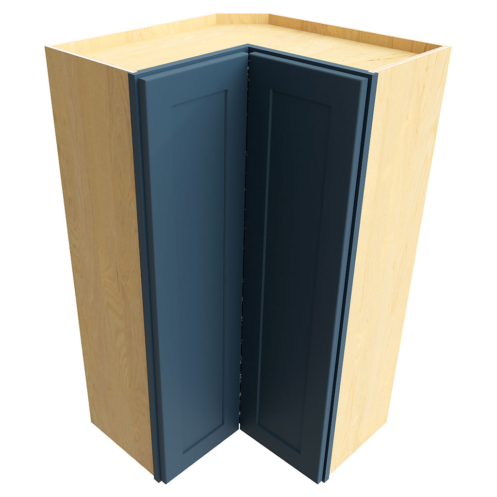Introducing the WPC2442, a 24x42x24 inch pie cut wall corner cabinet in a stunning indigo color. With a depth of 24 inches, height of 42 inches, and width of 24 inches, this cabinet is perfect for any kitchen. Its stylish galaxy design adds a touch of elegance to your space. Get yours today and enhance your kitchen's functionality and aesthetics.